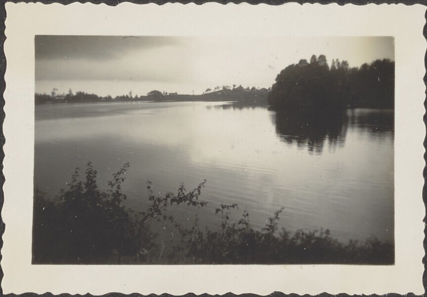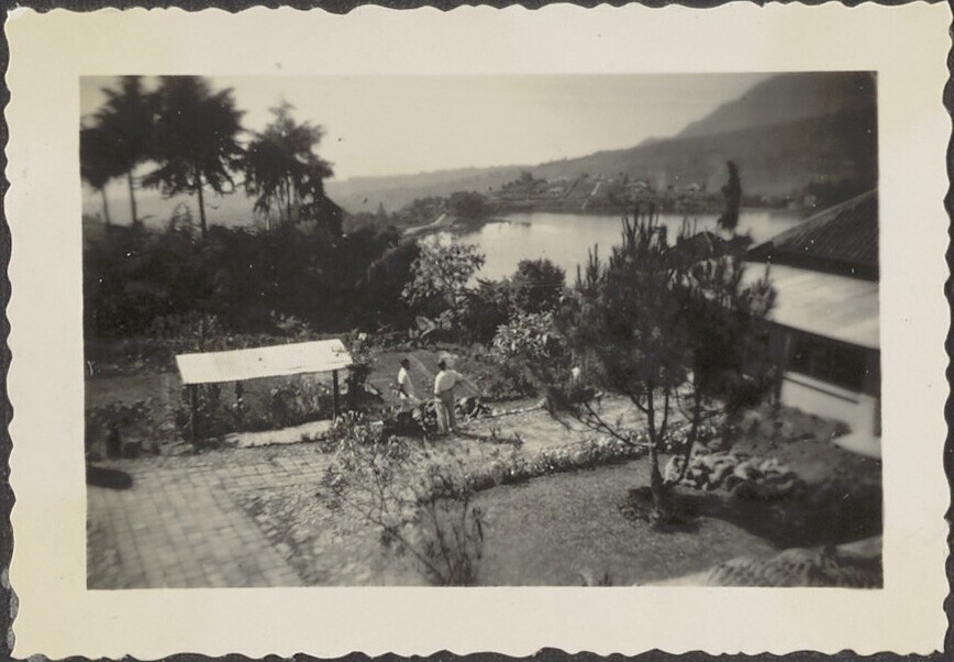 Uitzicht op de tuin en het meer van Sarangan