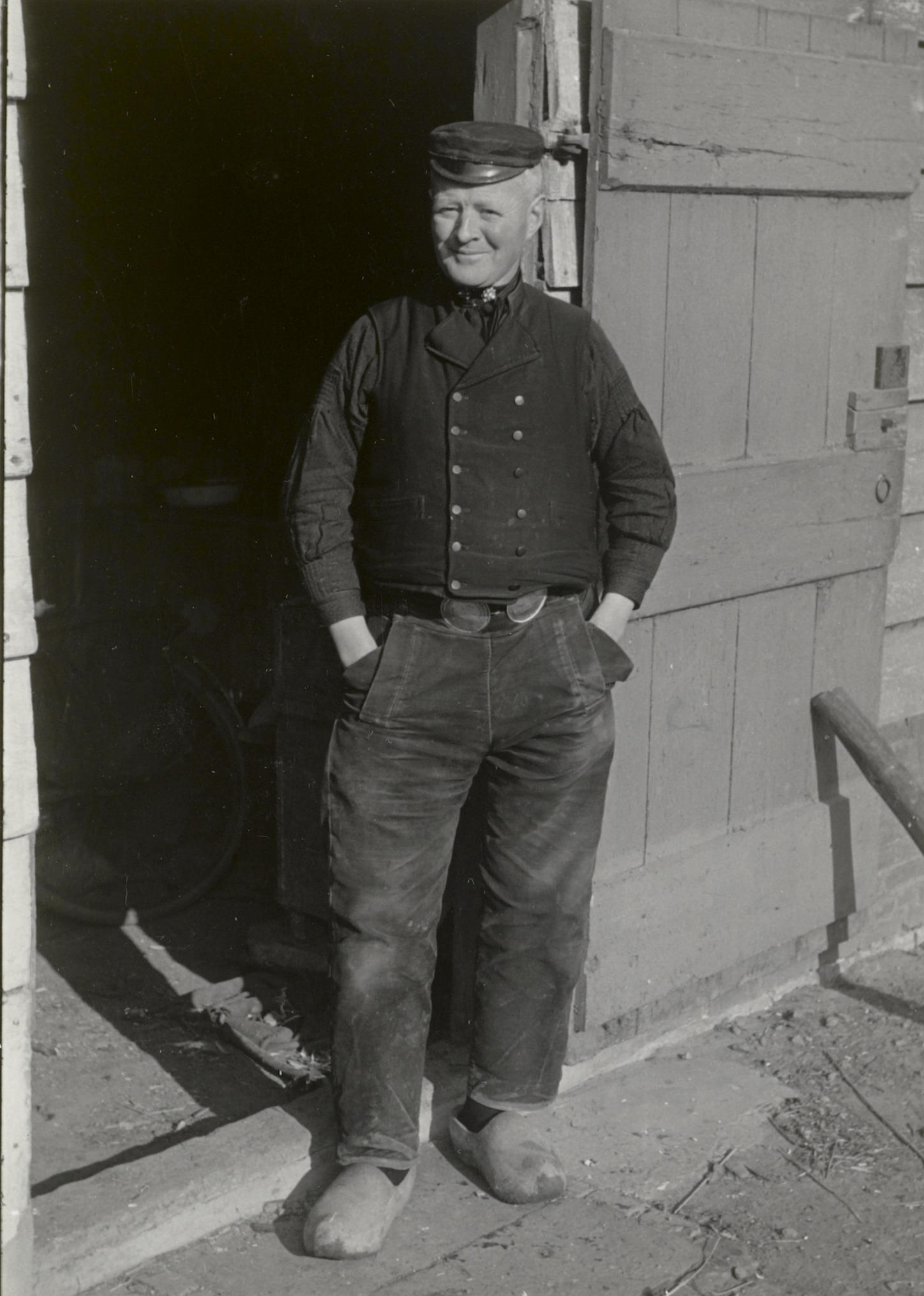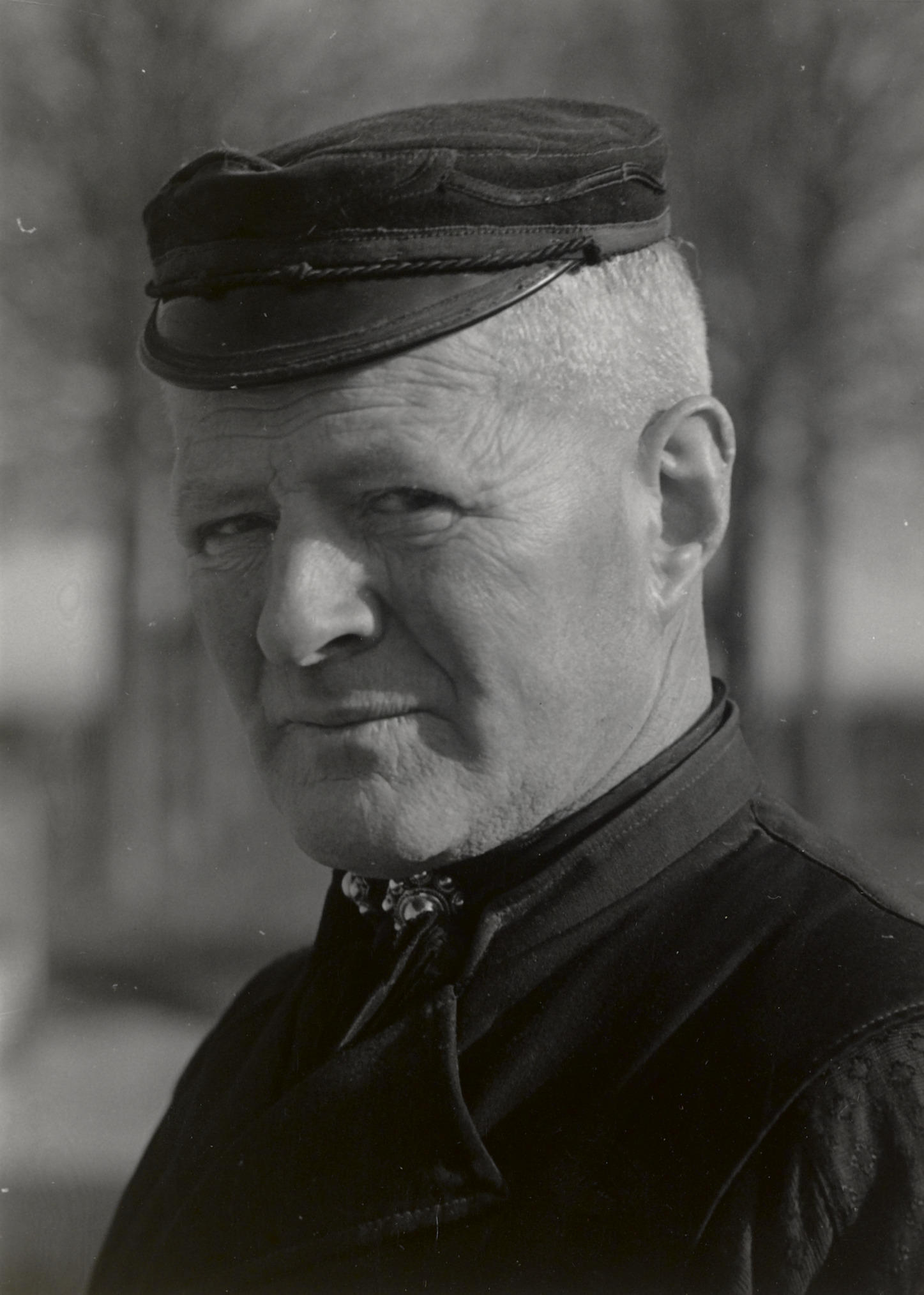 Cees Dekker in Axelse dracht, 1950 (zwart-wit foto)