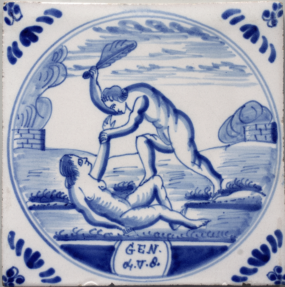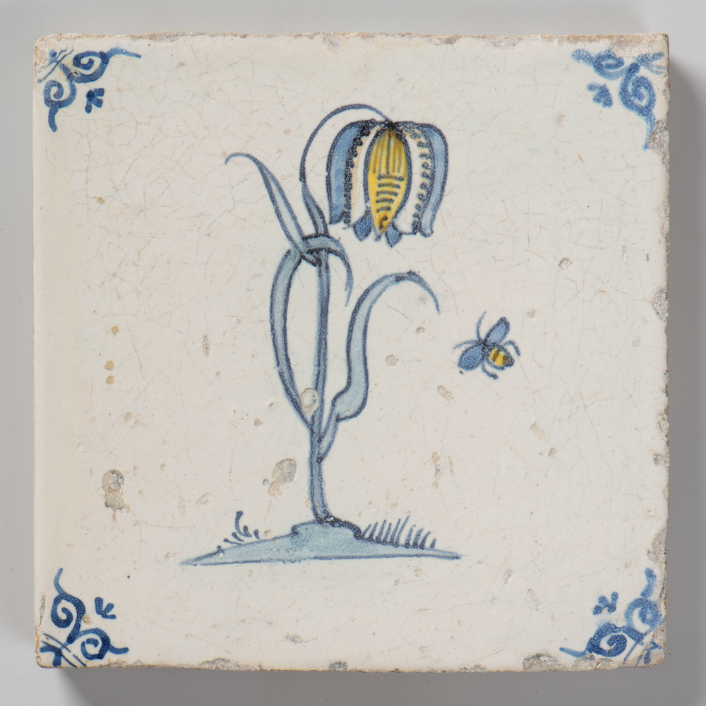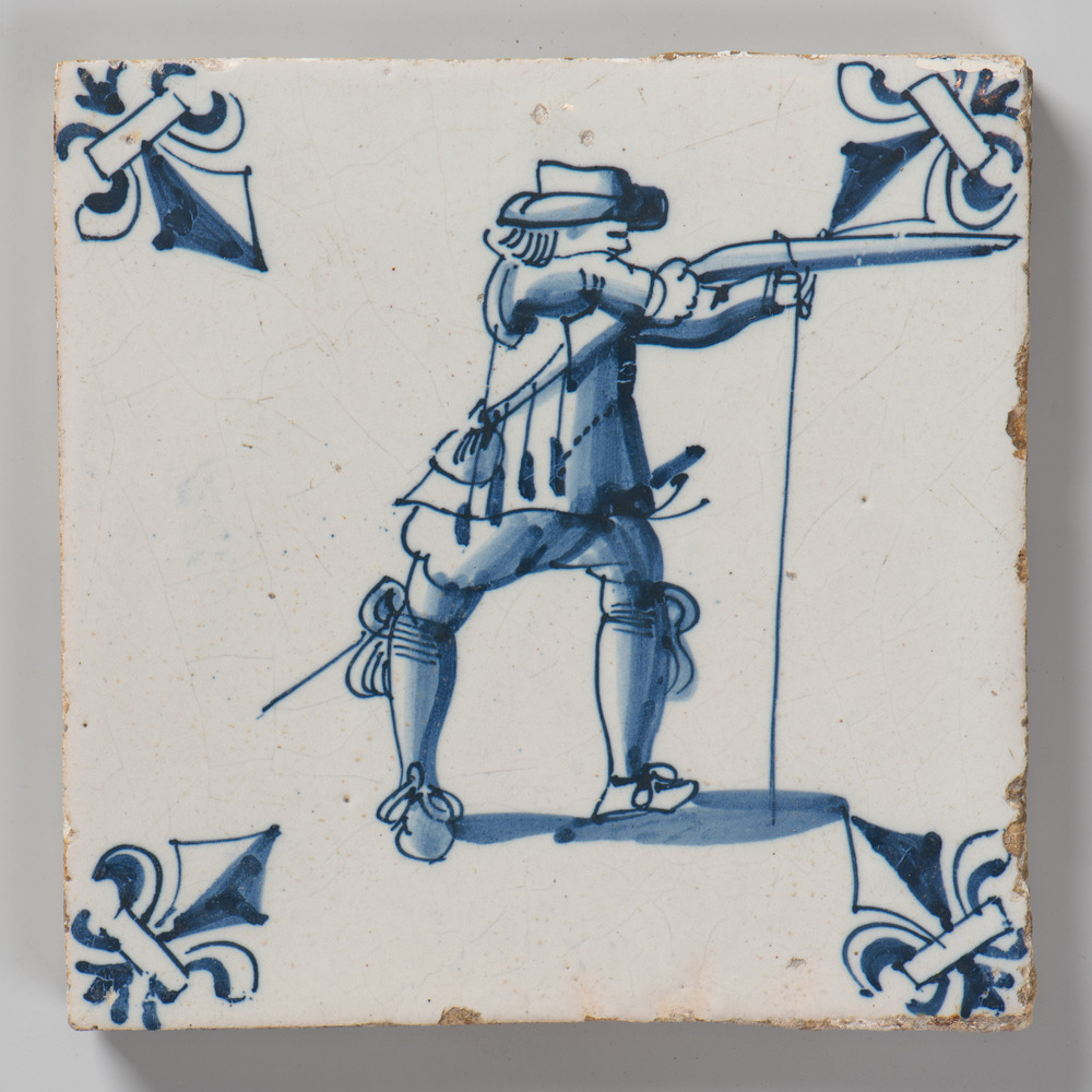 tegel van aardewerk in onderglazuur, voorstellende: ...