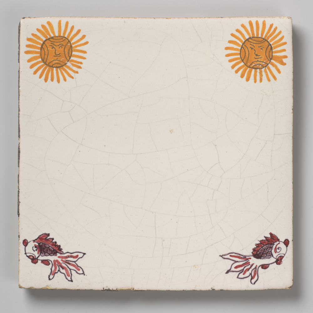 tegel van aardewerk met tinglazuur, voorstellende ho...