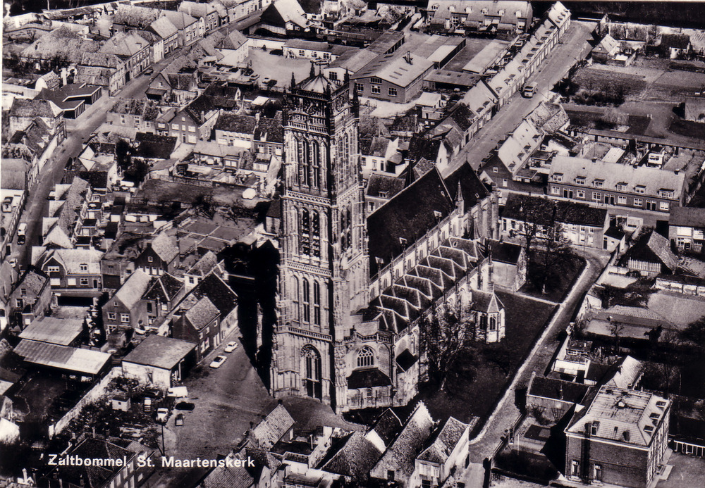 Luchtfoto van Zaltbommel st Maartenskerk.