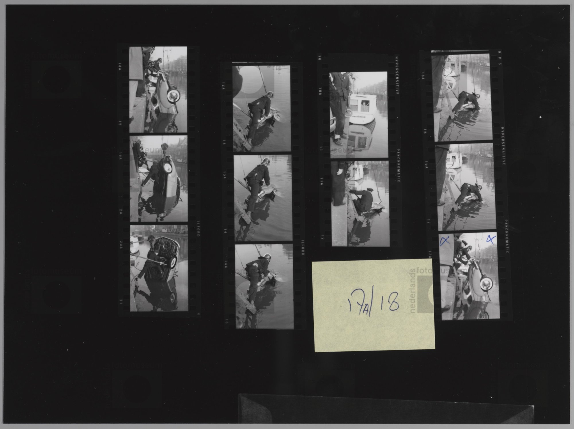 Amsterdam Kloveniersburgwal. Auto te water, brandweer