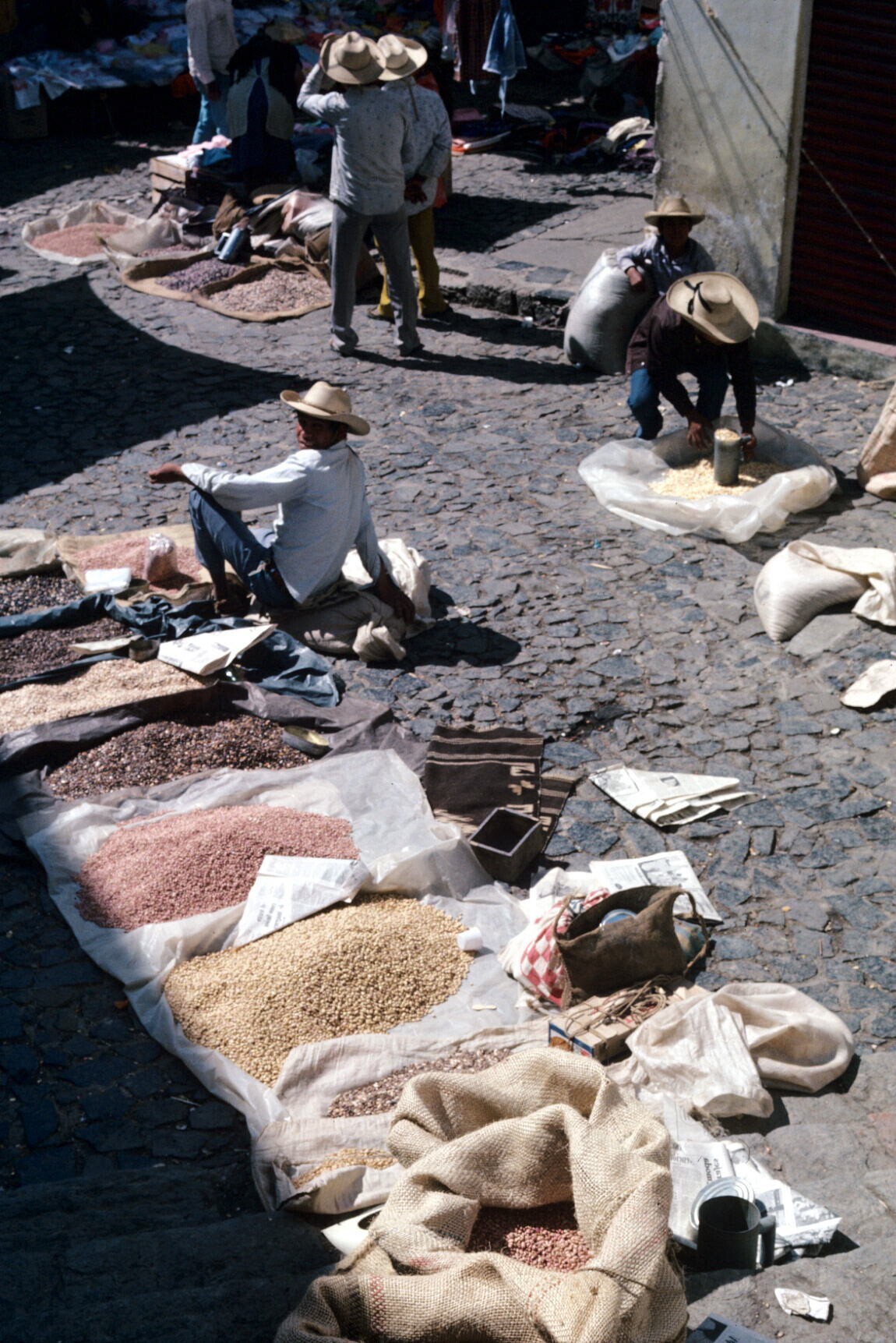 man op markt, met aardewerk kruik uit Tulimán op sch...