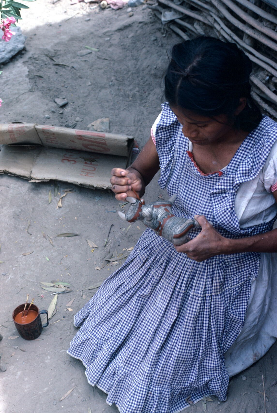 aardewerk bij huisdeur, o.a. tlalchiquihuites (vergi...