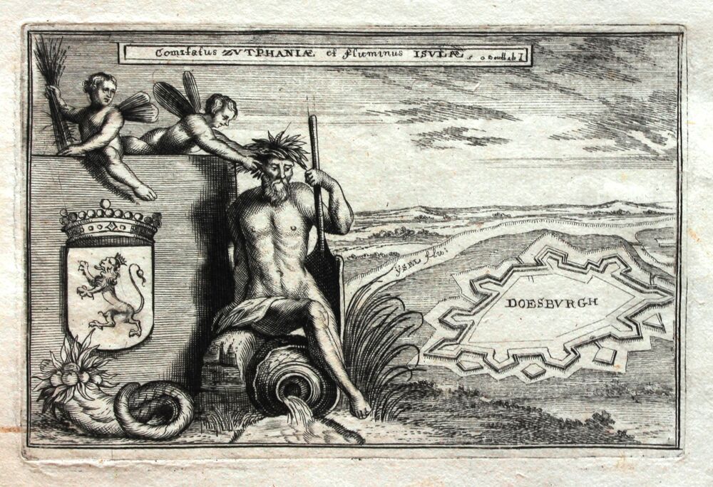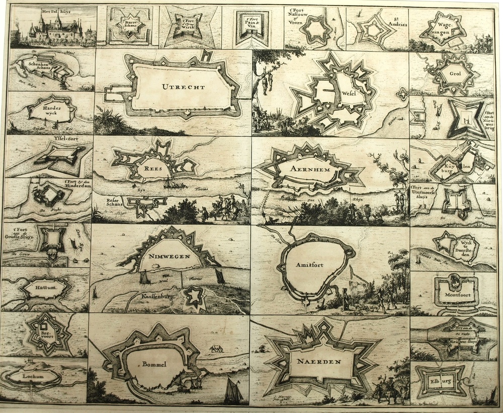 Gravure voorstellende TE BUREN aan de Linge, vervaar...
