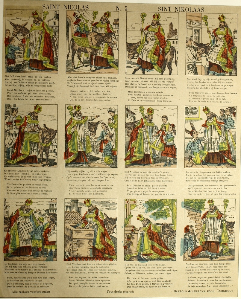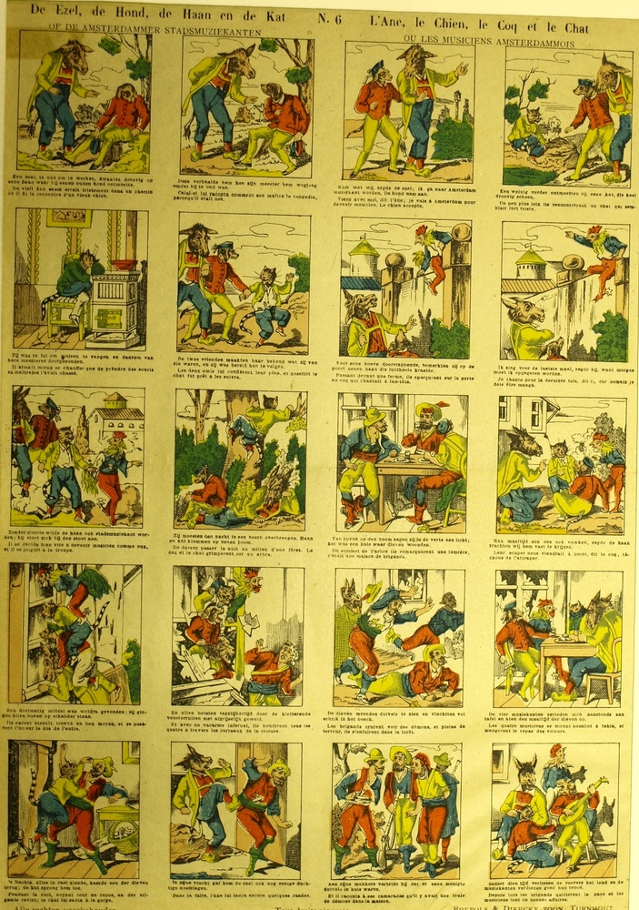 Centsprent met twaalf gekleurde prentjes met het ver...