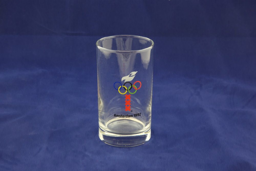 Een glas 'Amsterdam 1992' ter promotie van de Olympi...
