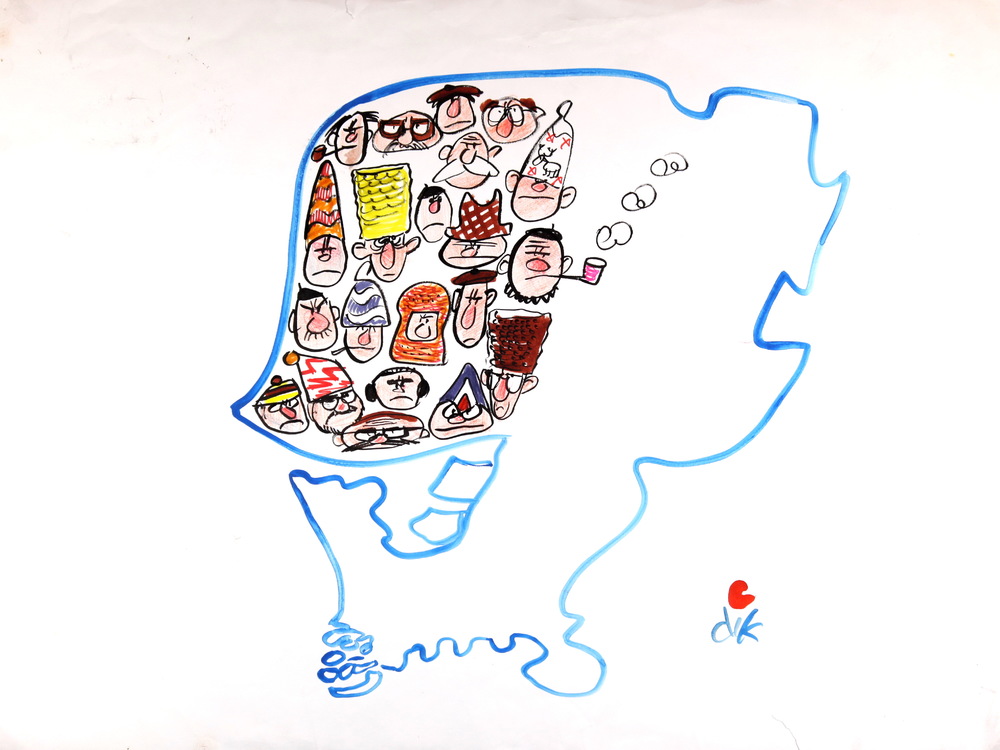 Karikatuurtekening: ‘de koppige Friezen’, Dik Bruyne...