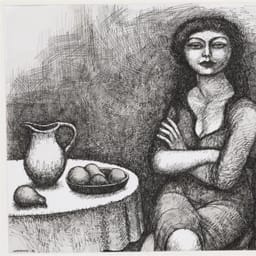 Vrouw op stoel bij tafel