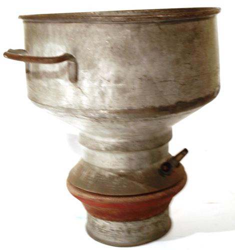 Melkzeef of teems van metaal gebruikt om melk te fil...