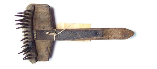 Sloothark van metaal gebruikt voor het hekkelen van ...
