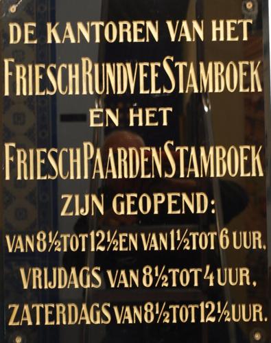 Naambord van hardsteen met de openingstijden van de ...