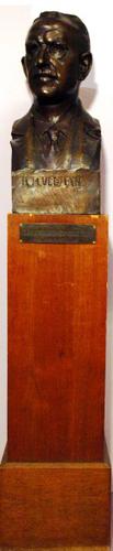 Borstbeeld van brons op een houten sokkel voorstelle...
