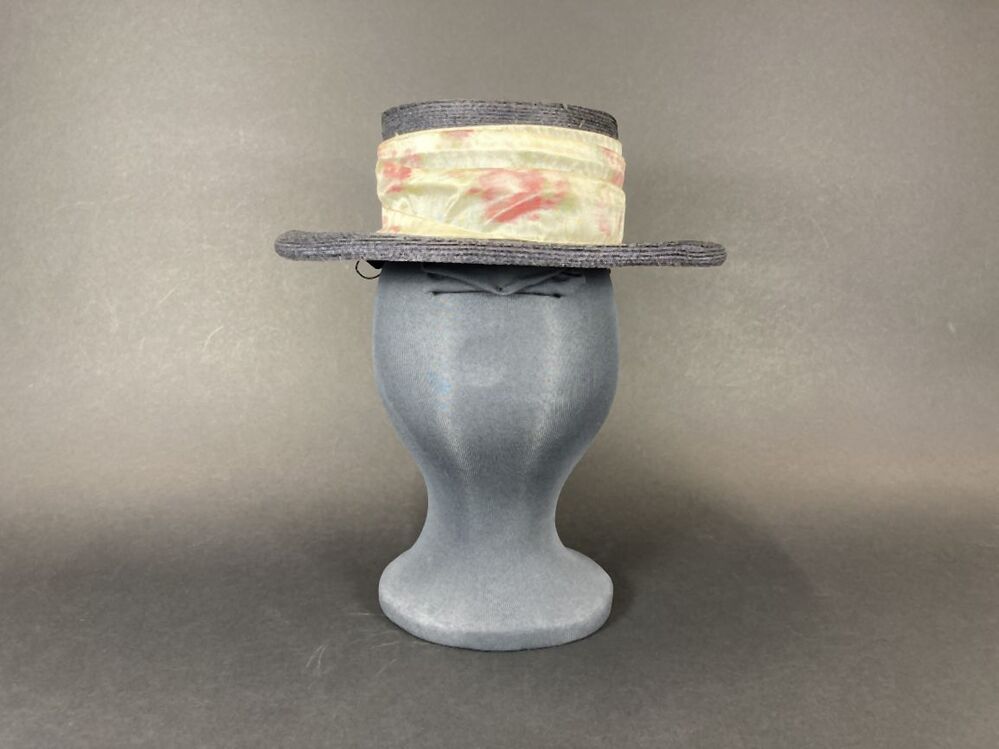 Hoed met stroband met rond de bol spiraalsgewijs raf...
