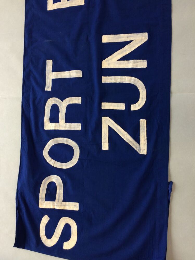 Spandoek, blauw met witte beschildering, SPORT EN AL...