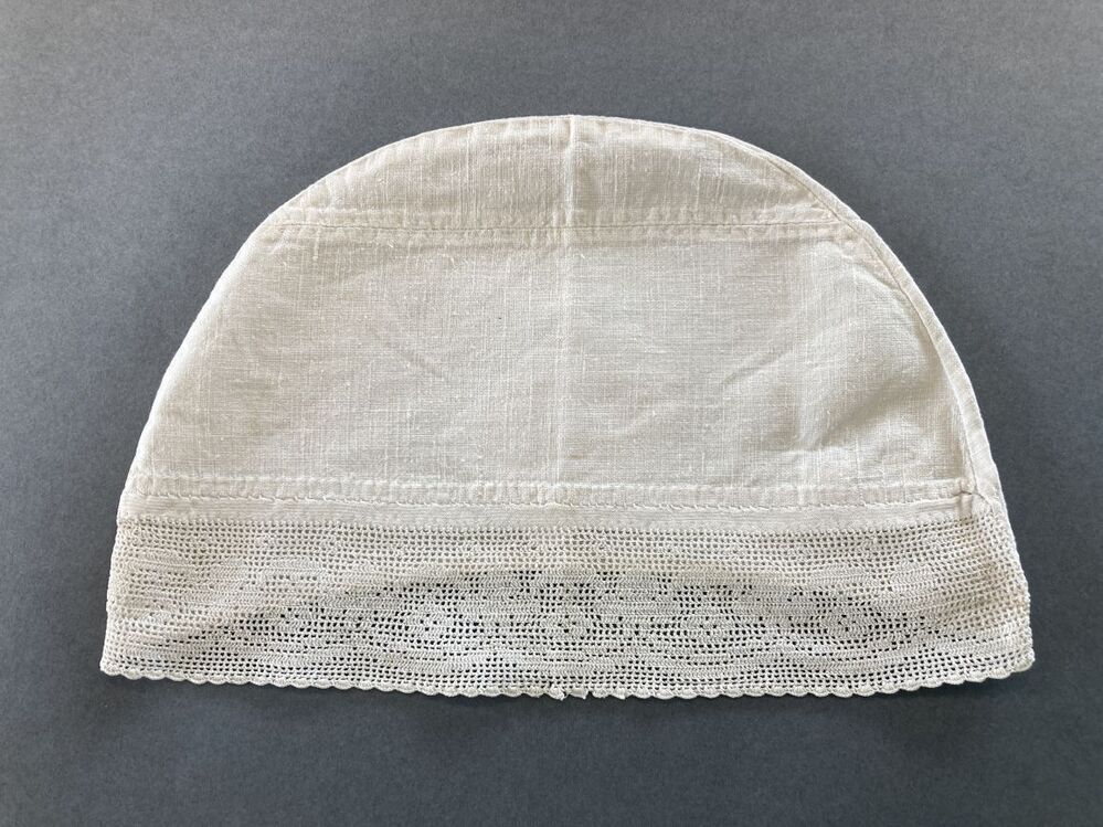Onopgemaakte rouwfloddermuts van fijn neteldoek