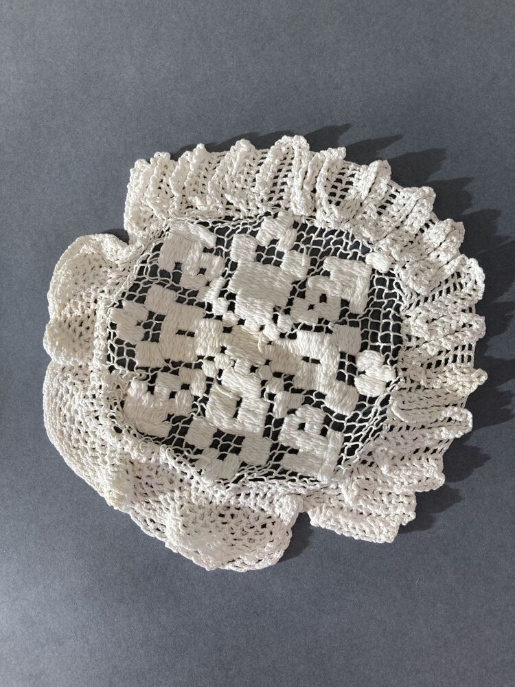 Morgenmuts, gehaakt van wit katoen, met ster van vie...
