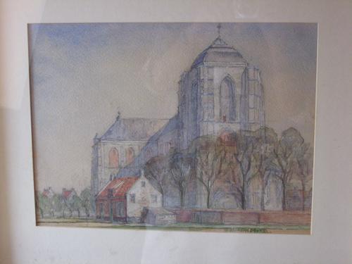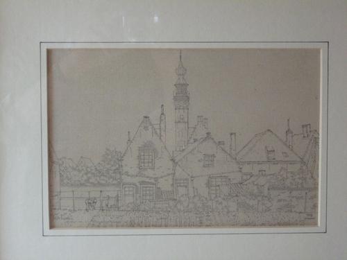 Raadhuis en Kerktoren van Veere; potloodtekening