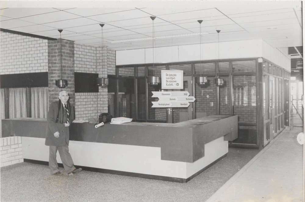 Verkoopbalie garage Mulders . Links de journalist/fo...