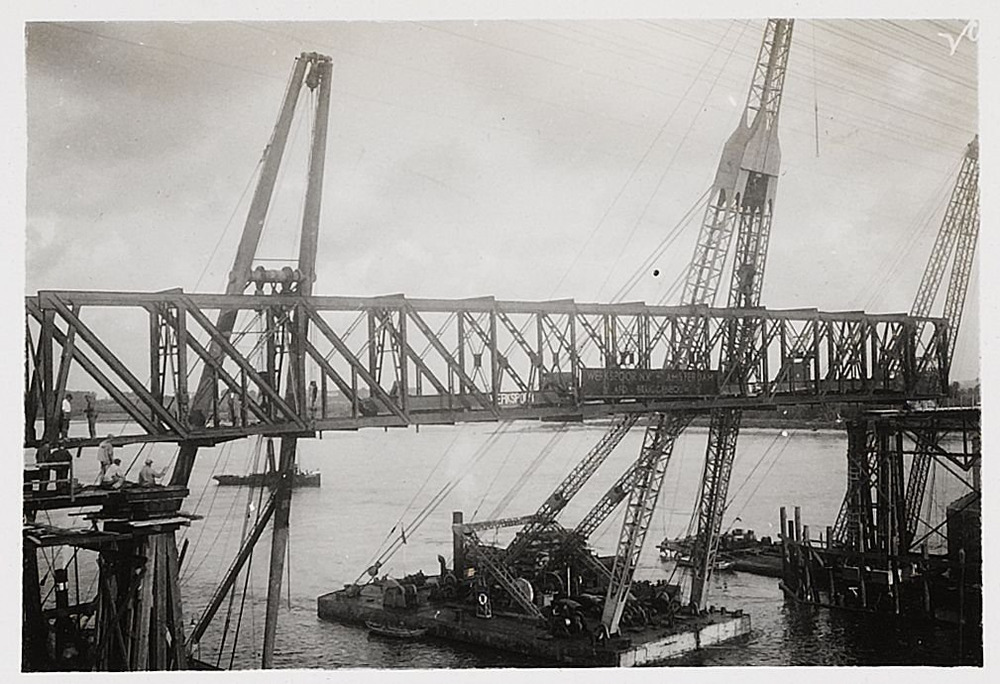 Verkeersbrug over de Waal in aanbouw,