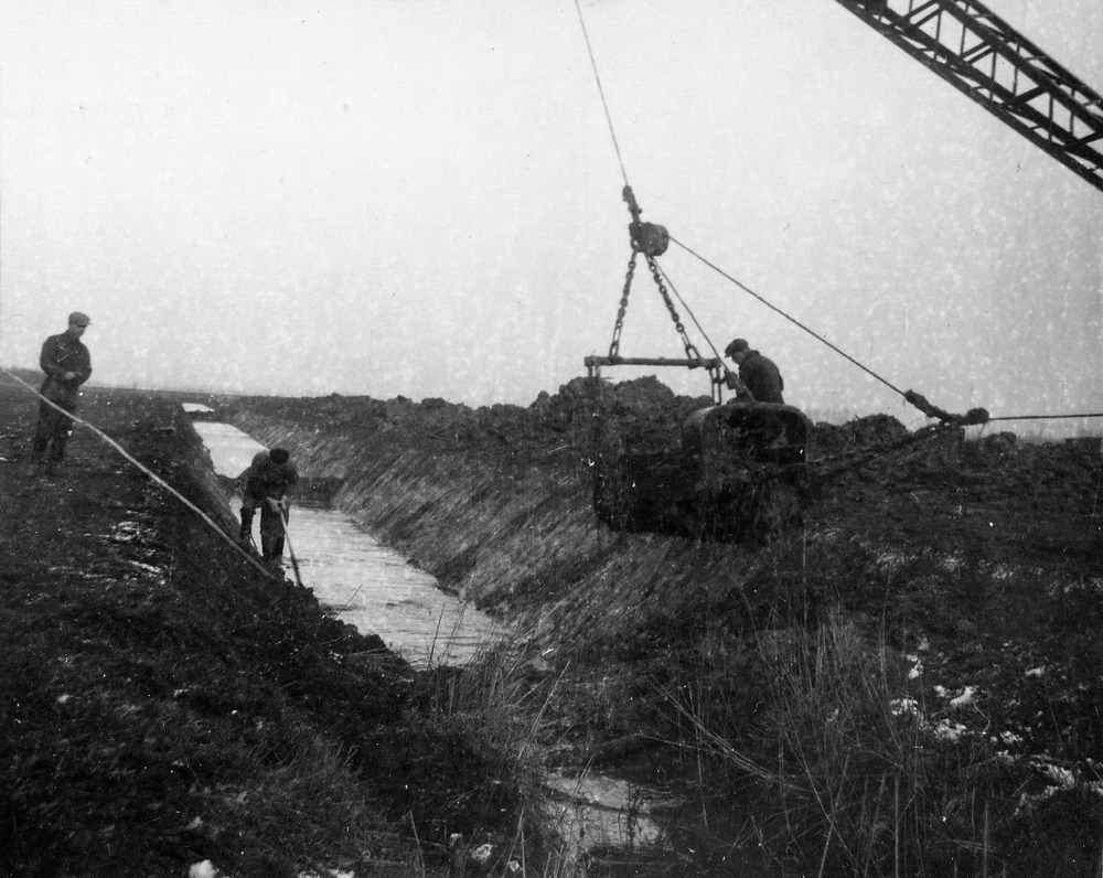 Uitgraven sloot met een dragline