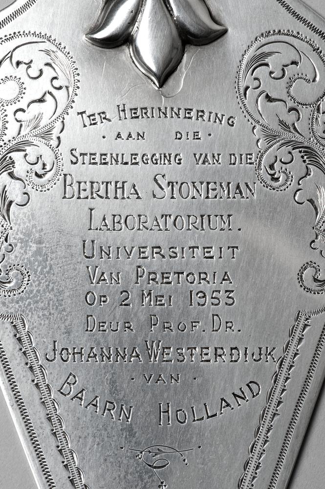 Zilveren troffel aangeboden aan Johanna Westerdijk