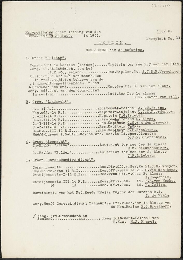 Brief van het Commando Zeeland over Kaderoefening in...