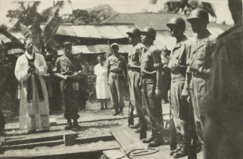 Indië na WO 2: begrafenis, militair, open graf, gees...