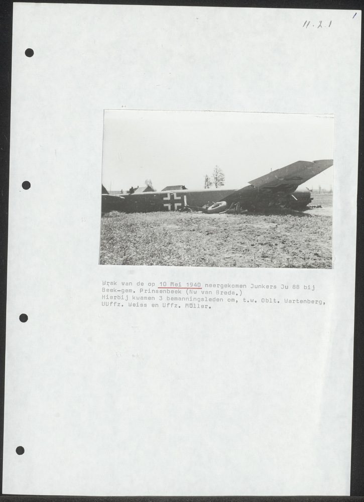 Foto neergeschoten Junkers-52 op 10 mei 1940 nabij B...