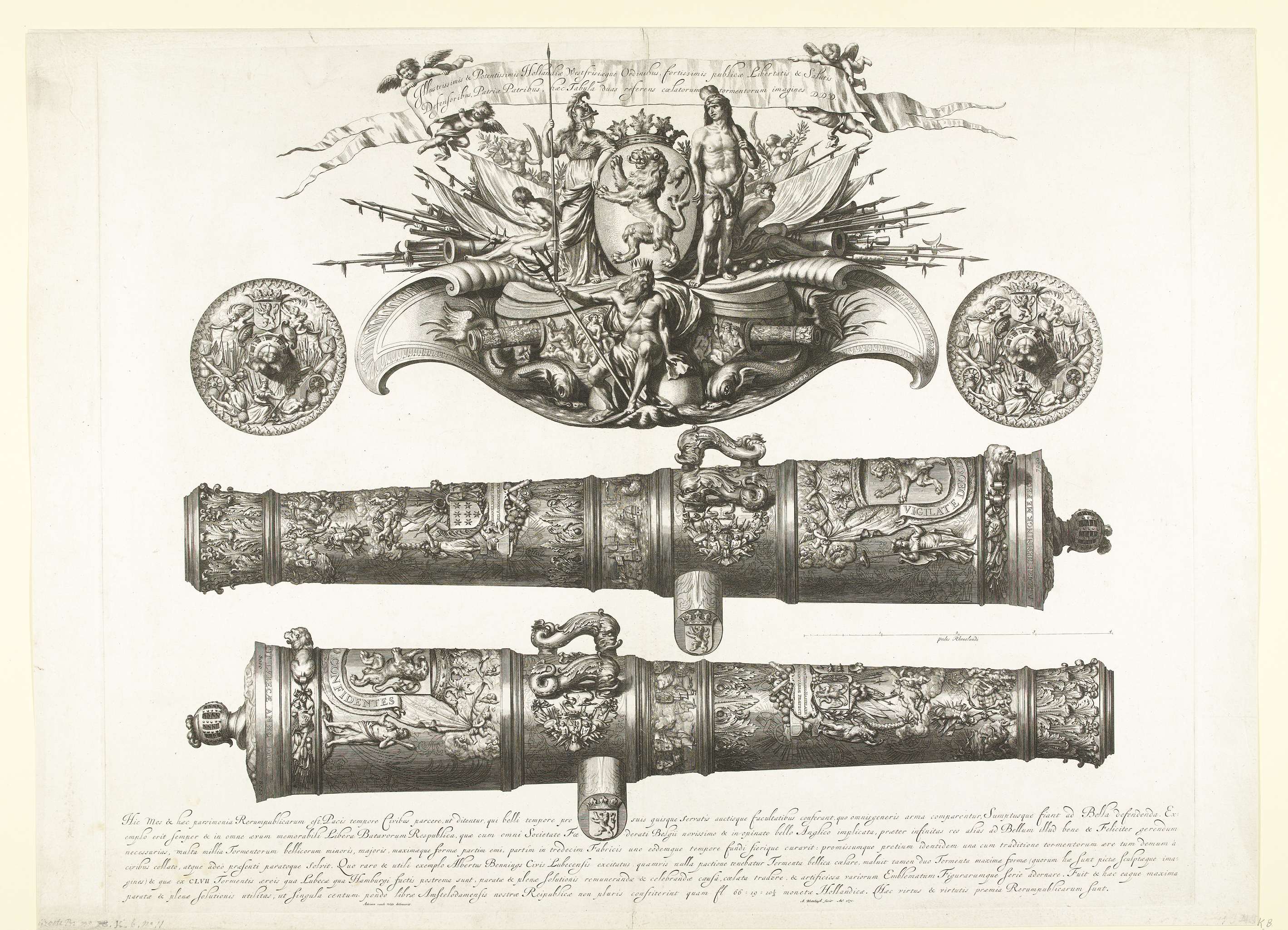 Achter- en zijaanzicht van twee kanonnen van Benningh