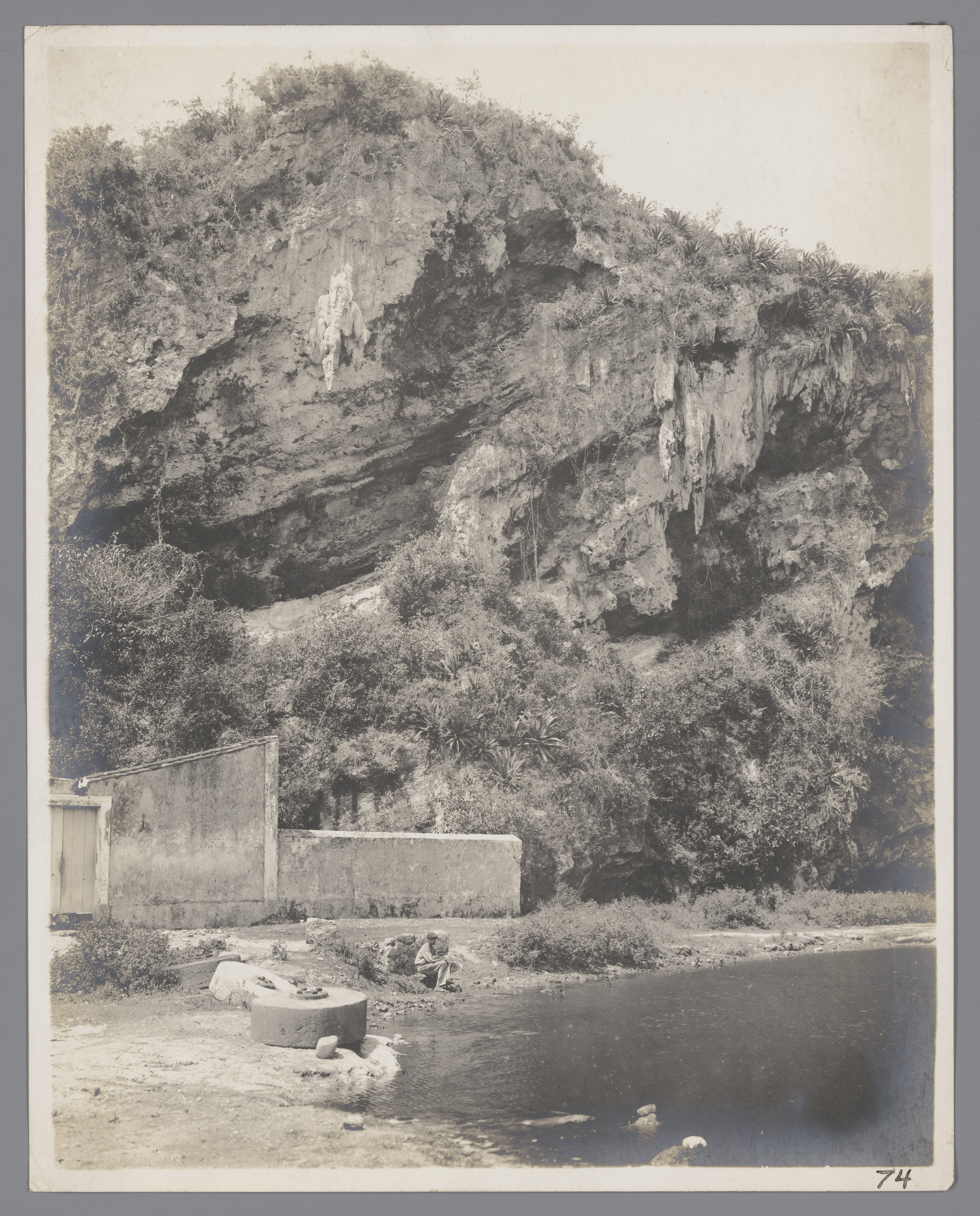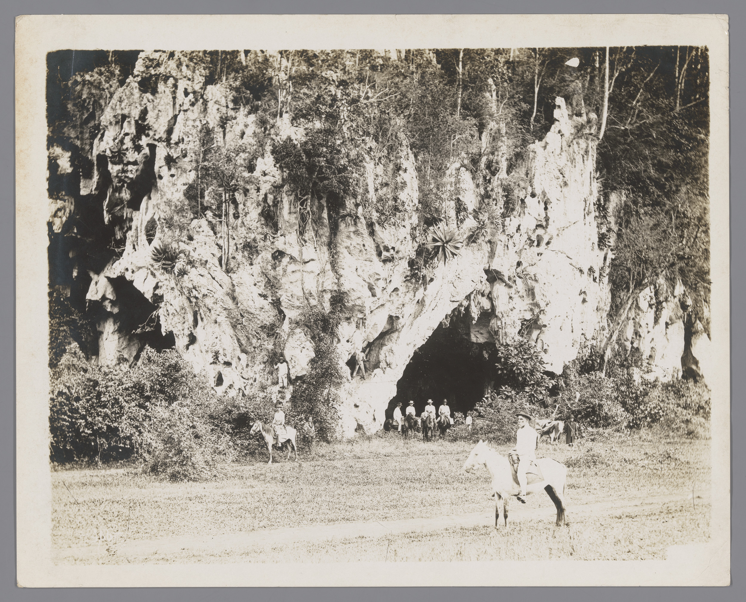 Mannen te paard voor een grot nabij Matanzas, Cuba
