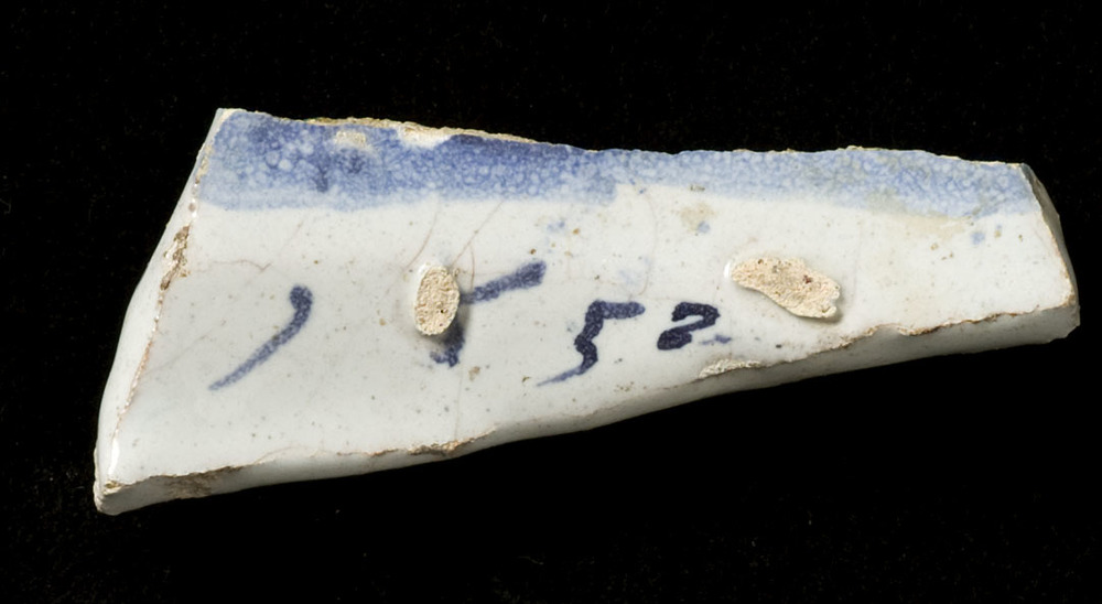 Scherf van keramiek, tinglazuur, gemaakt in Nederlan...