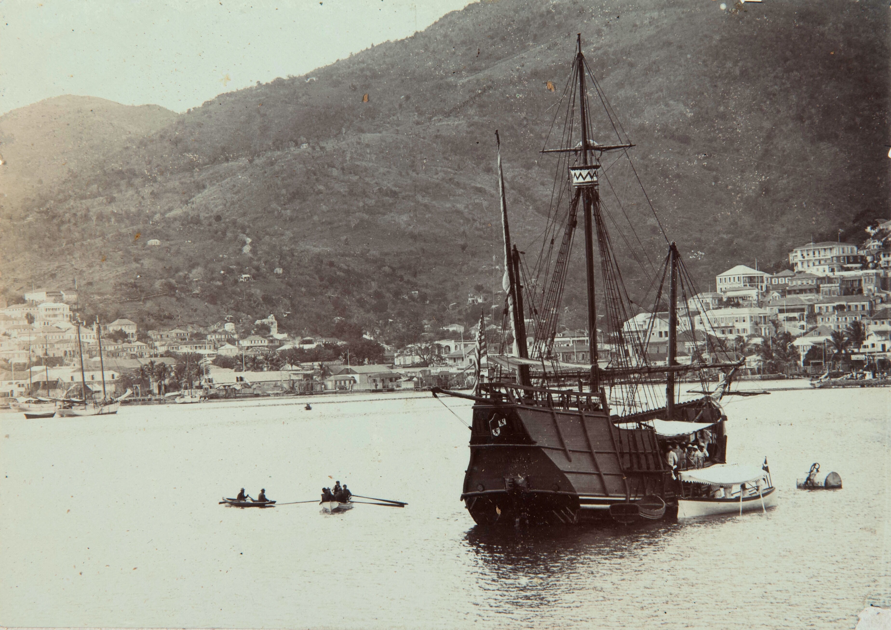 Zeilschip met drie masten in de haven van St. Thomas