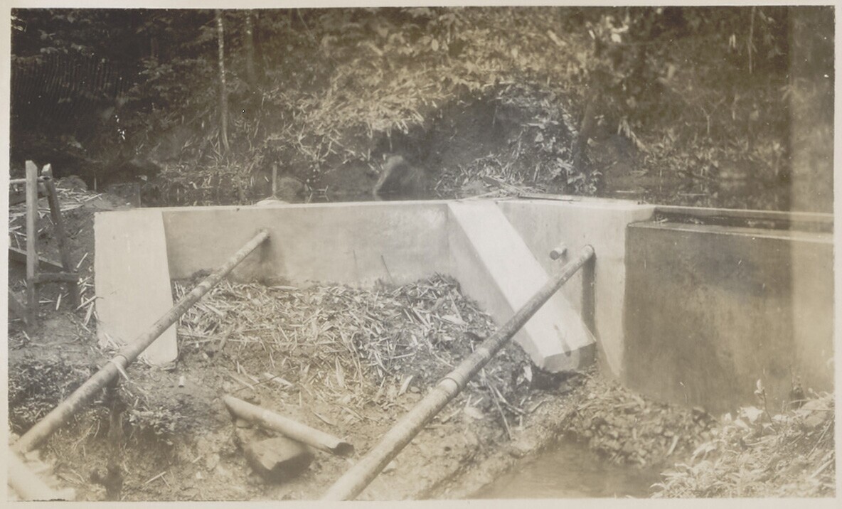 Foto uit album over de koffiefabriek op plantage Satak