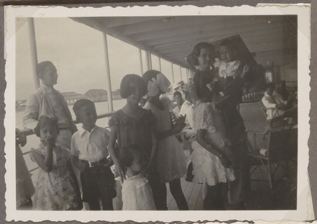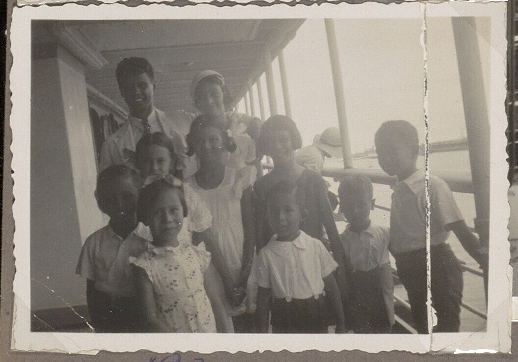 Mensen aan boord van de 'Willem Ruys'