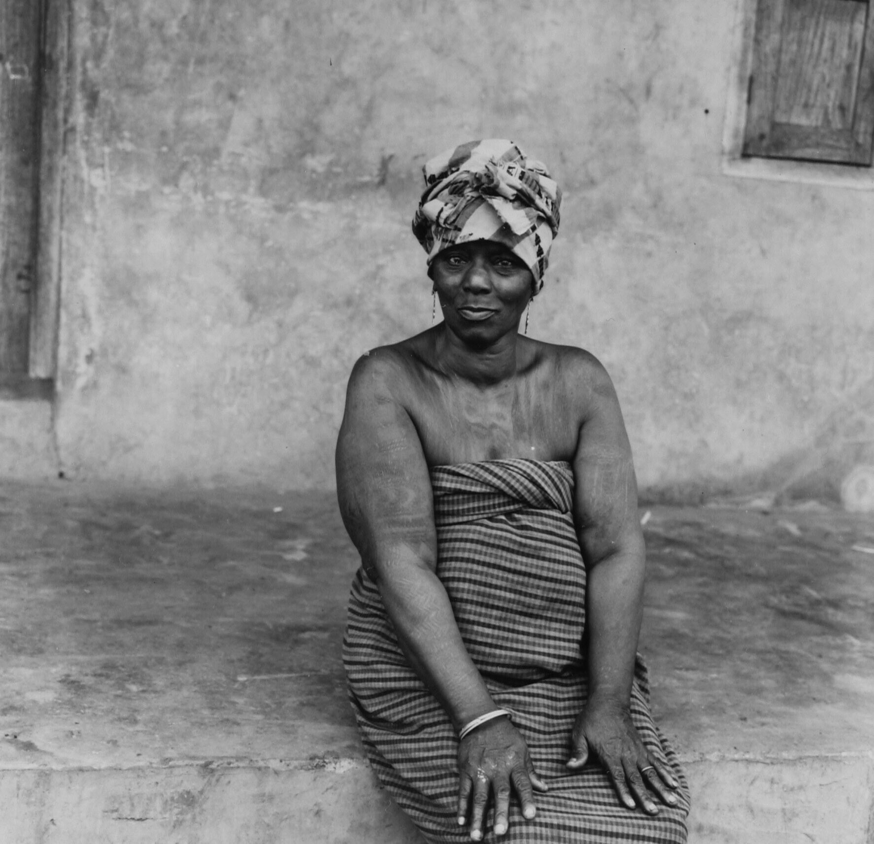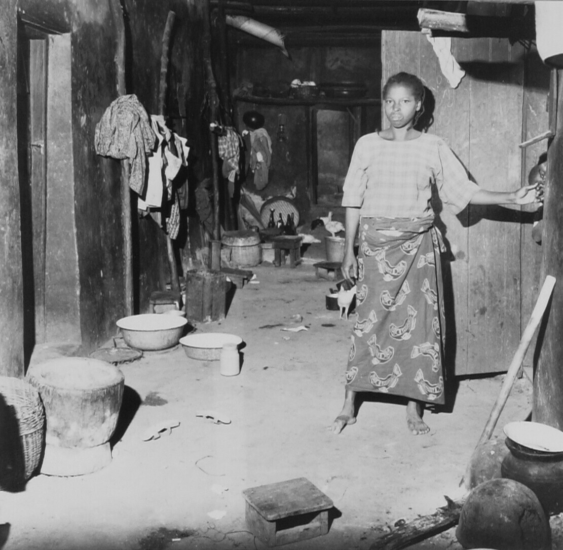 Yoruba vrouwen en kinderen in de deuropening van het...