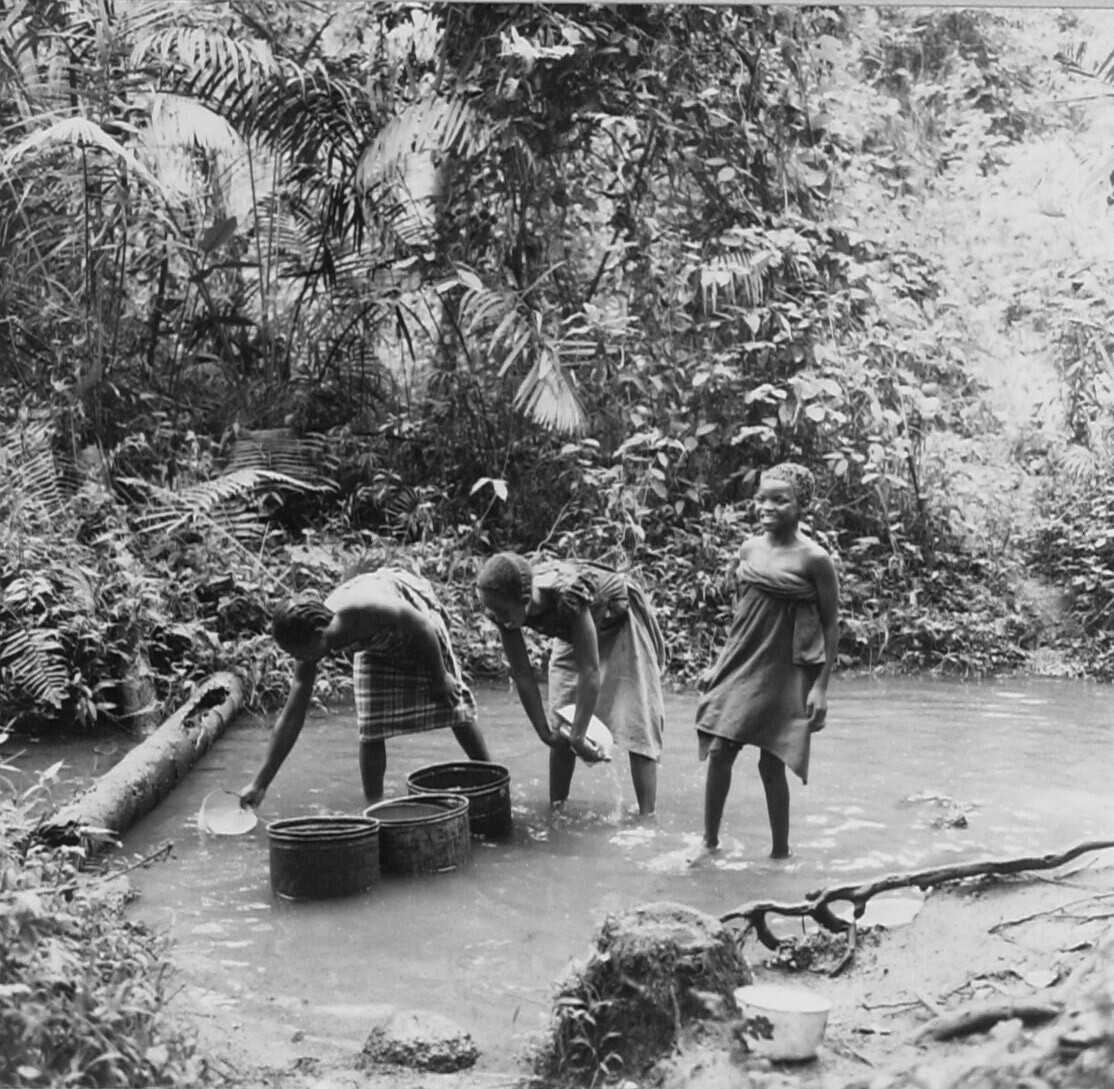 Yoruba vrouw en kinderen op de weg naar Aran Orin