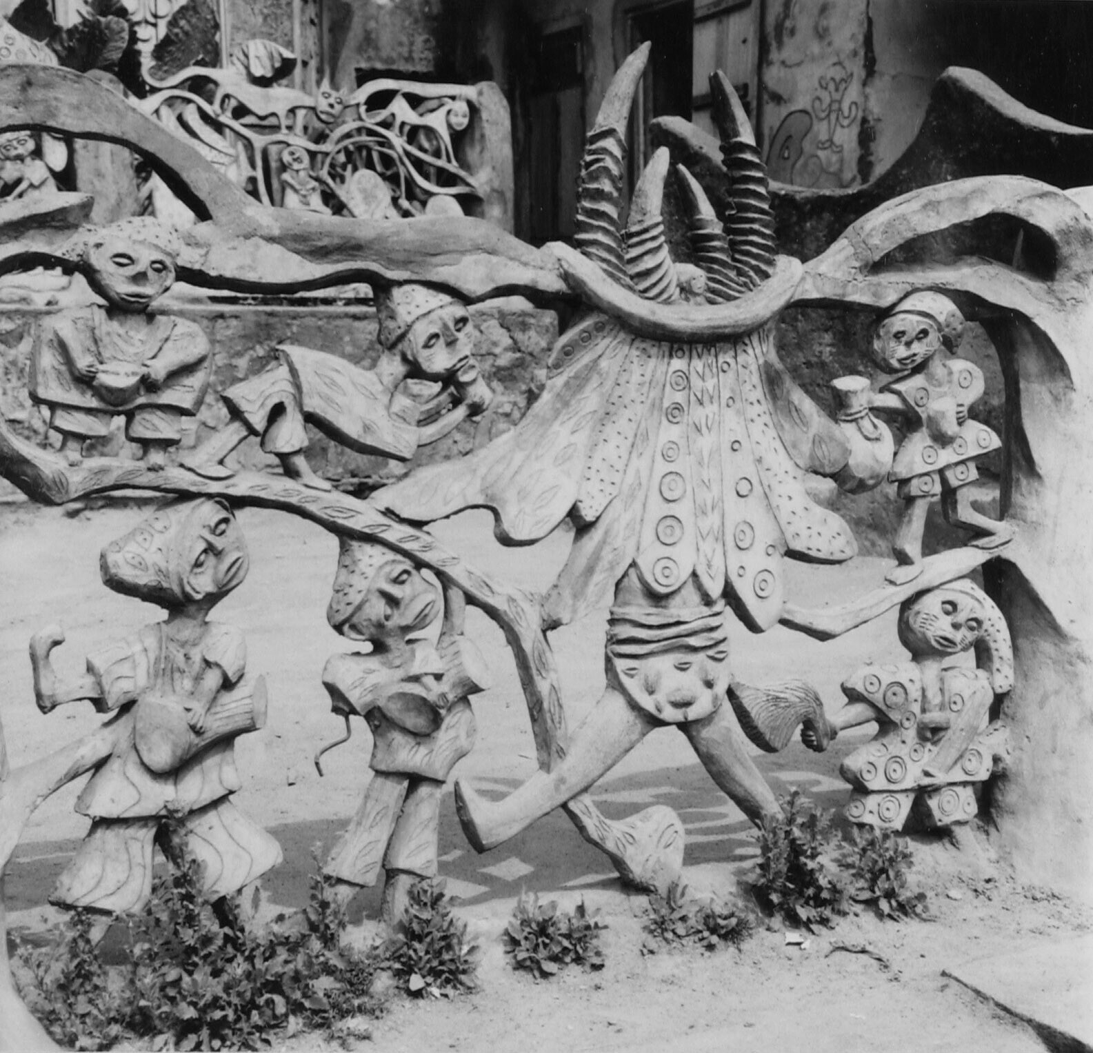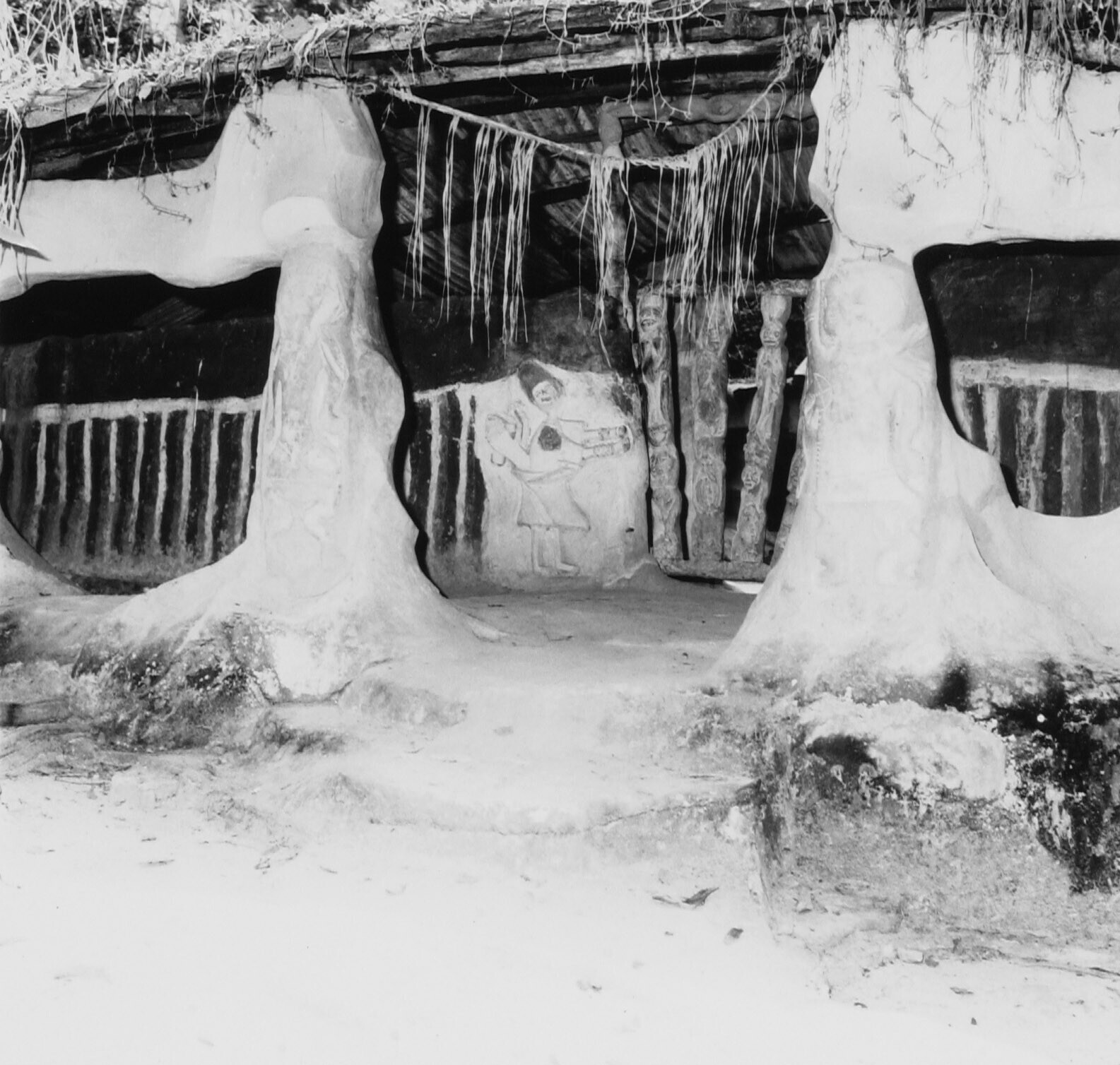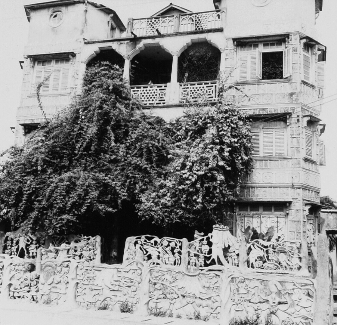 Zicht op het huis van Susanne Wenger met cementen sc...