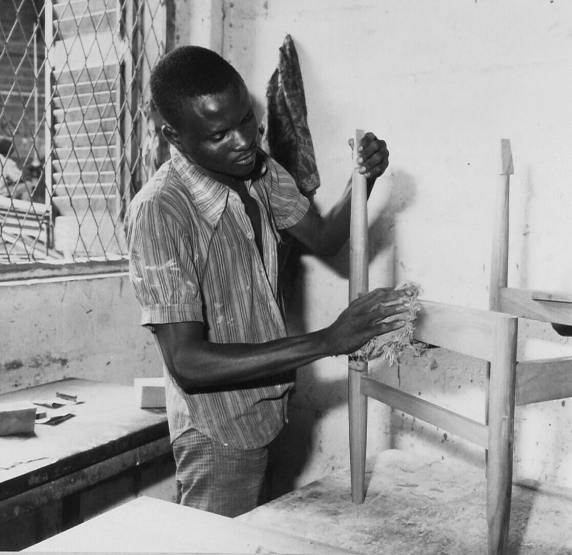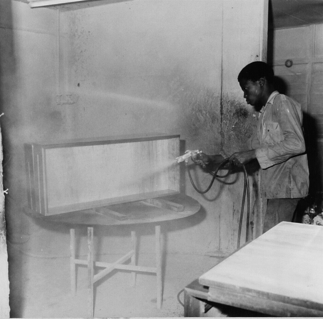 Het spuiten van meubels in de werkplaats van Thomas ...