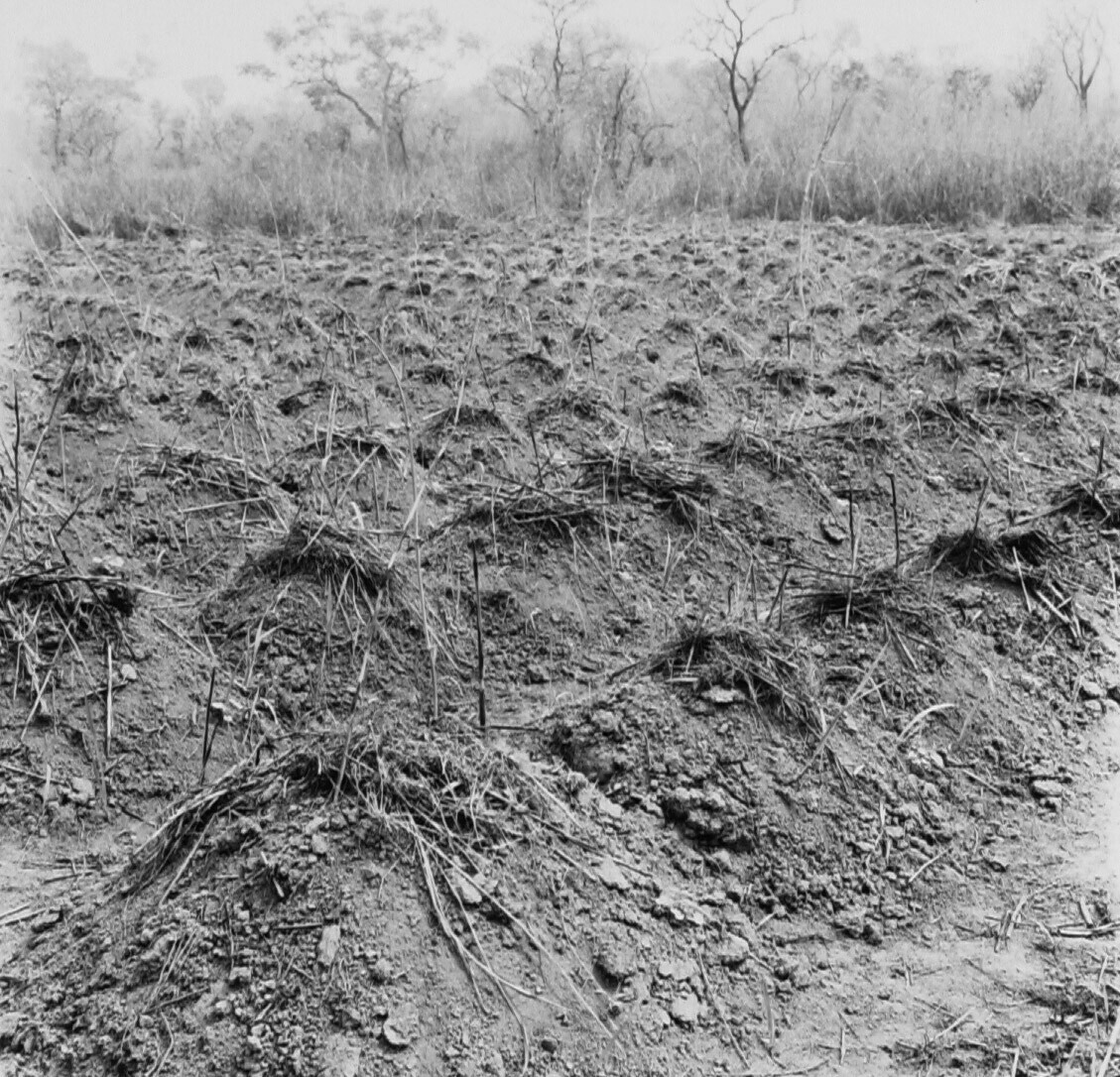 De yam knollen zijn na besprenkeling met Dieldrin kl...