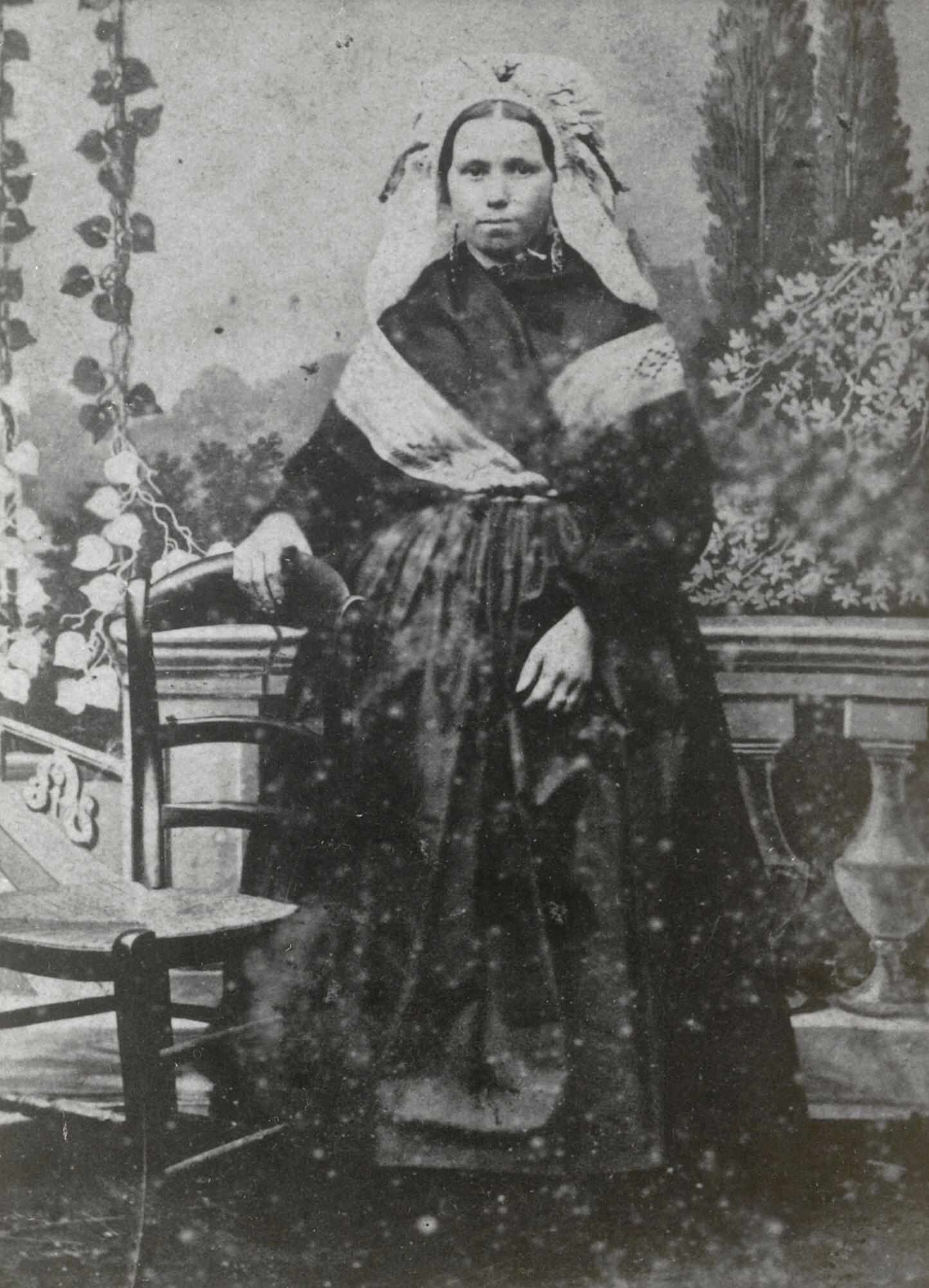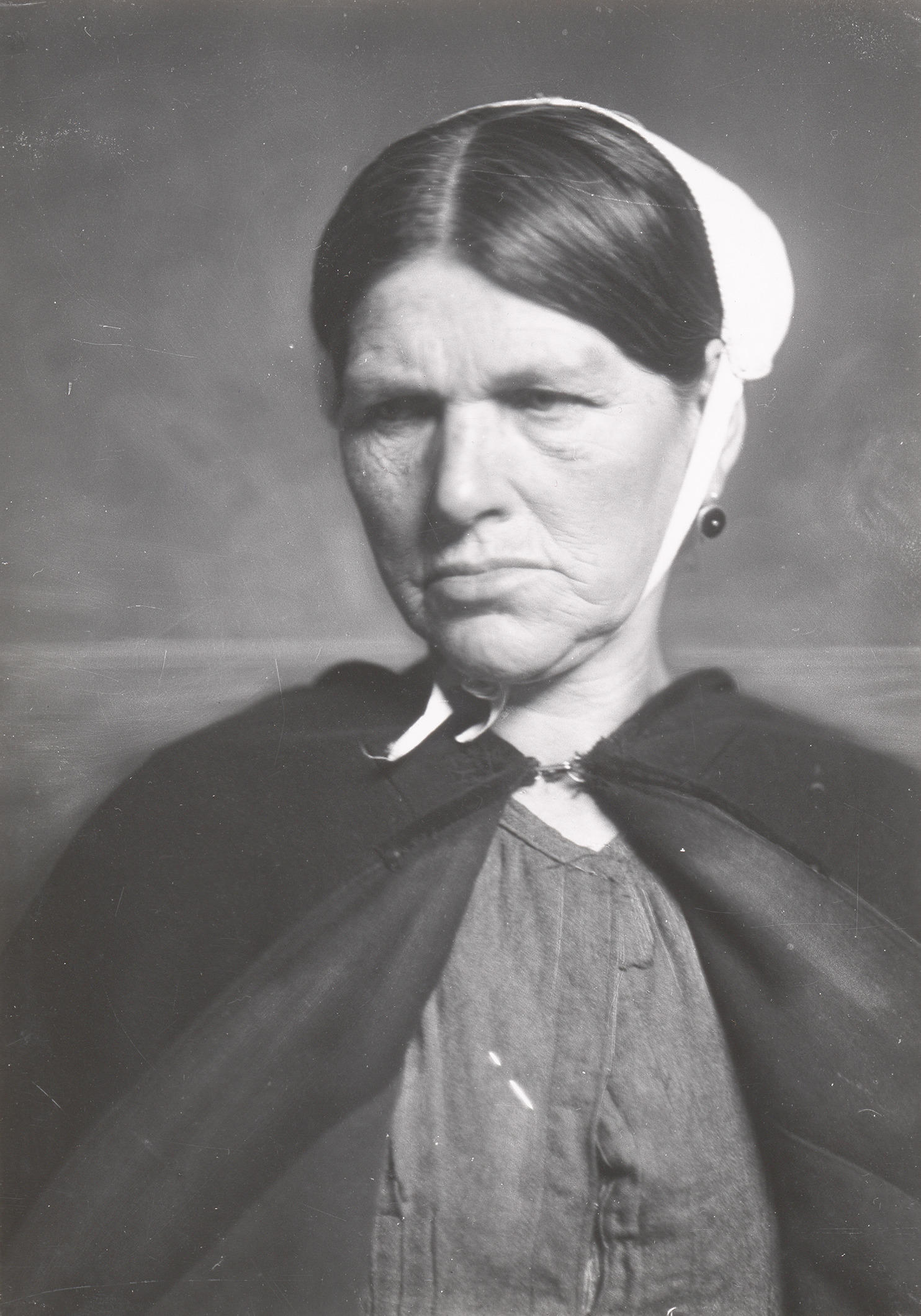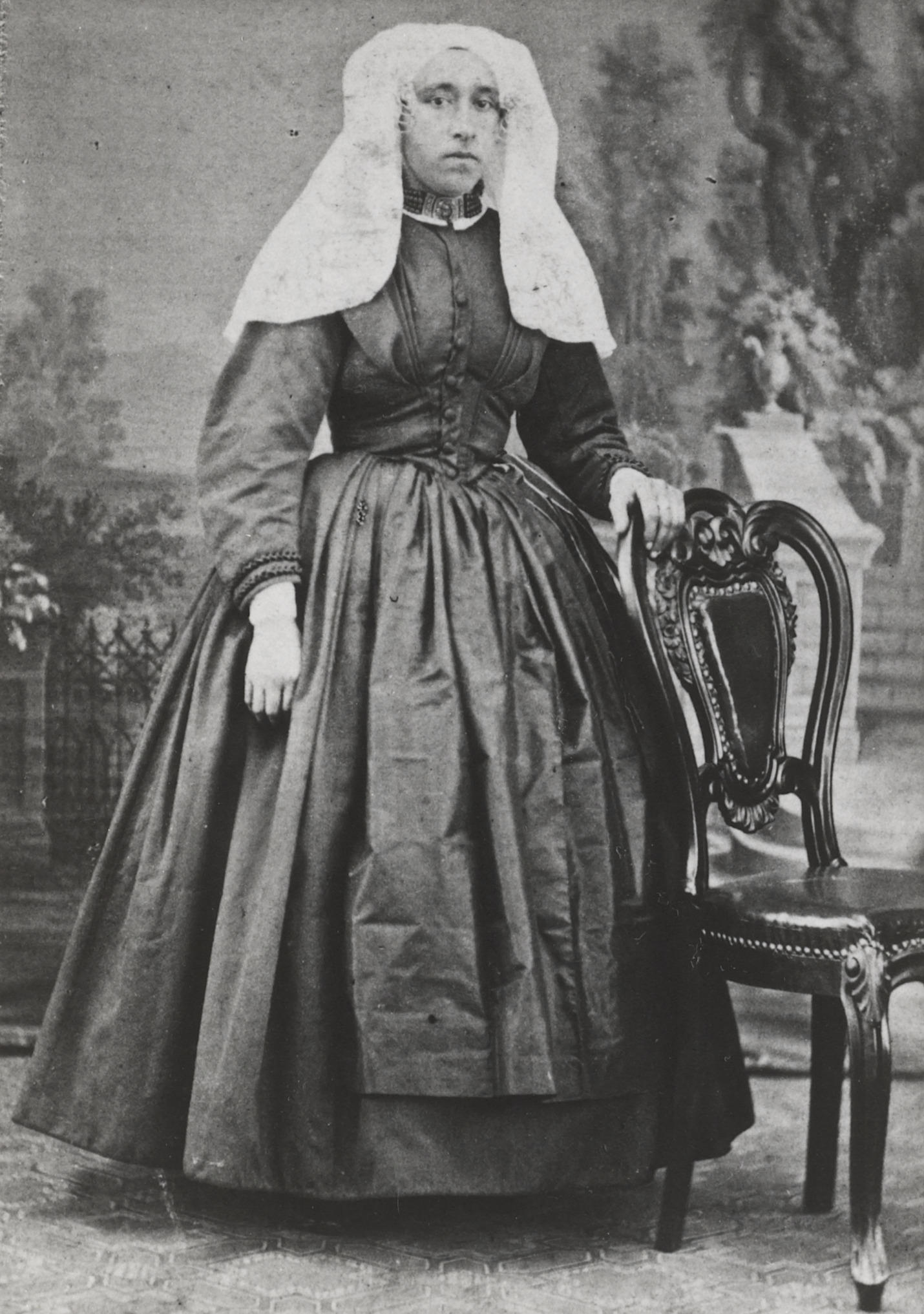 Vrouw in streekdracht uit Beijerland, circa 1890 (zw...