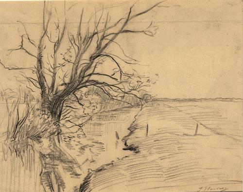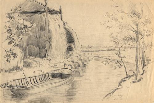 Tekening van een afgedamde vaart bij de Noorderdwars...