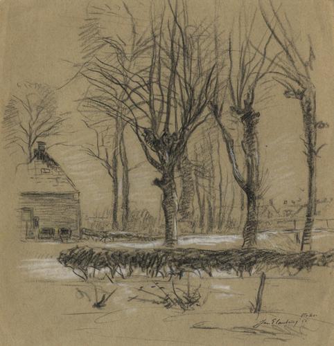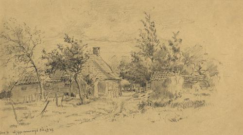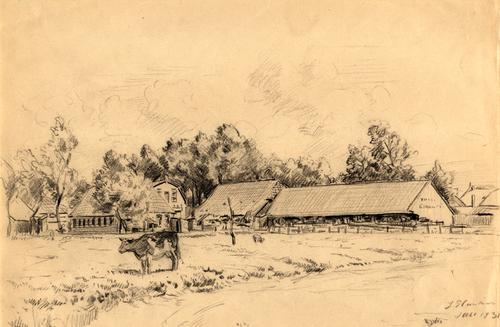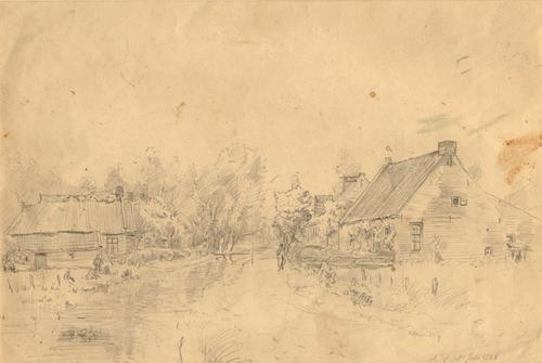 Tekening van een boerderij bij de Noorderdwarsvaart ...