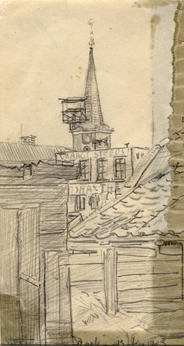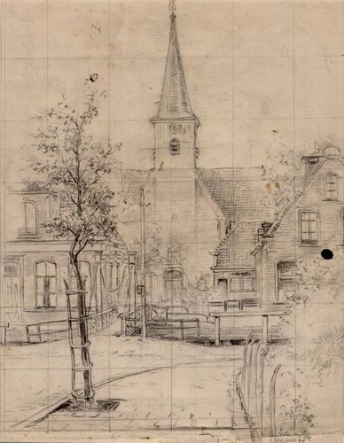 Tekening van de Zuidkade te Drachten, met zicht op d...