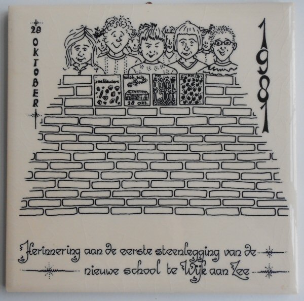 Tegel, 1e steenlegging de nieuwe school te Wijk aan Zee