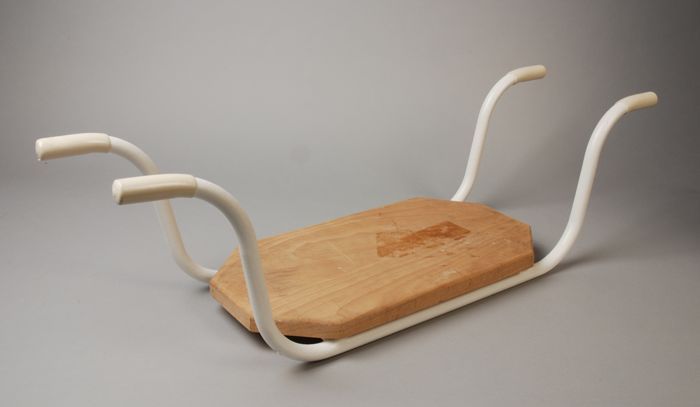 Badzitje bestaand uit een houten plank op twee metal...
