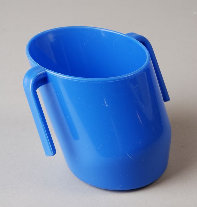 Blauwe "DOIDY" cup, schuine mok met twee handvatten