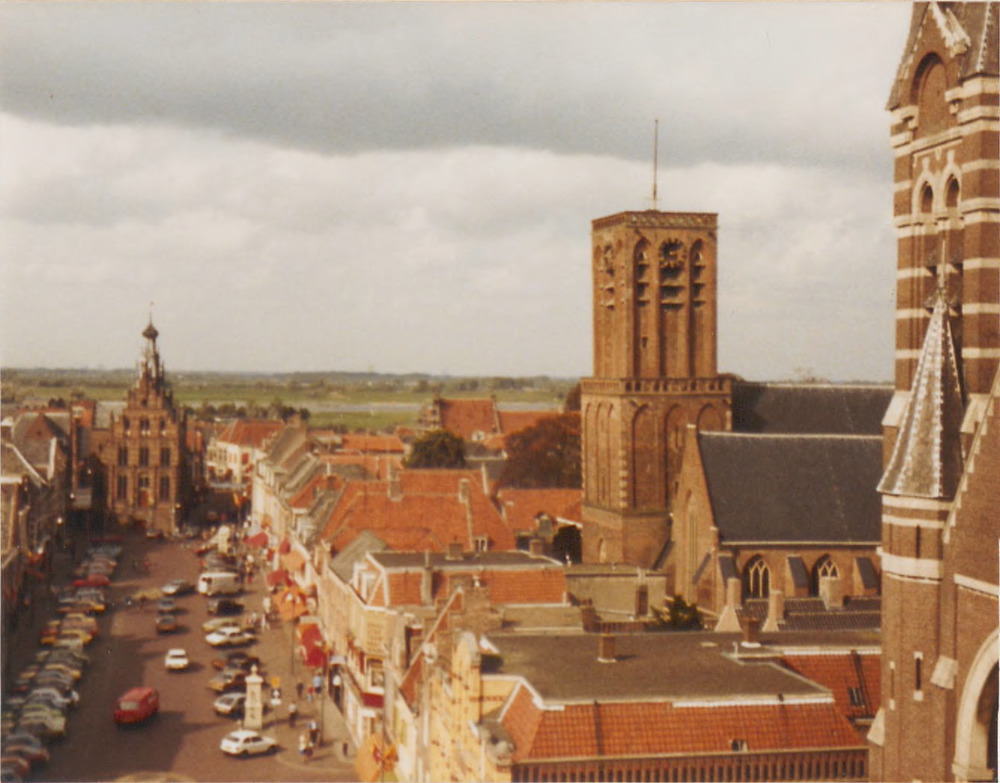 Gezicht op Markt vanaf Binnenpoort Stadhuis en vierk...