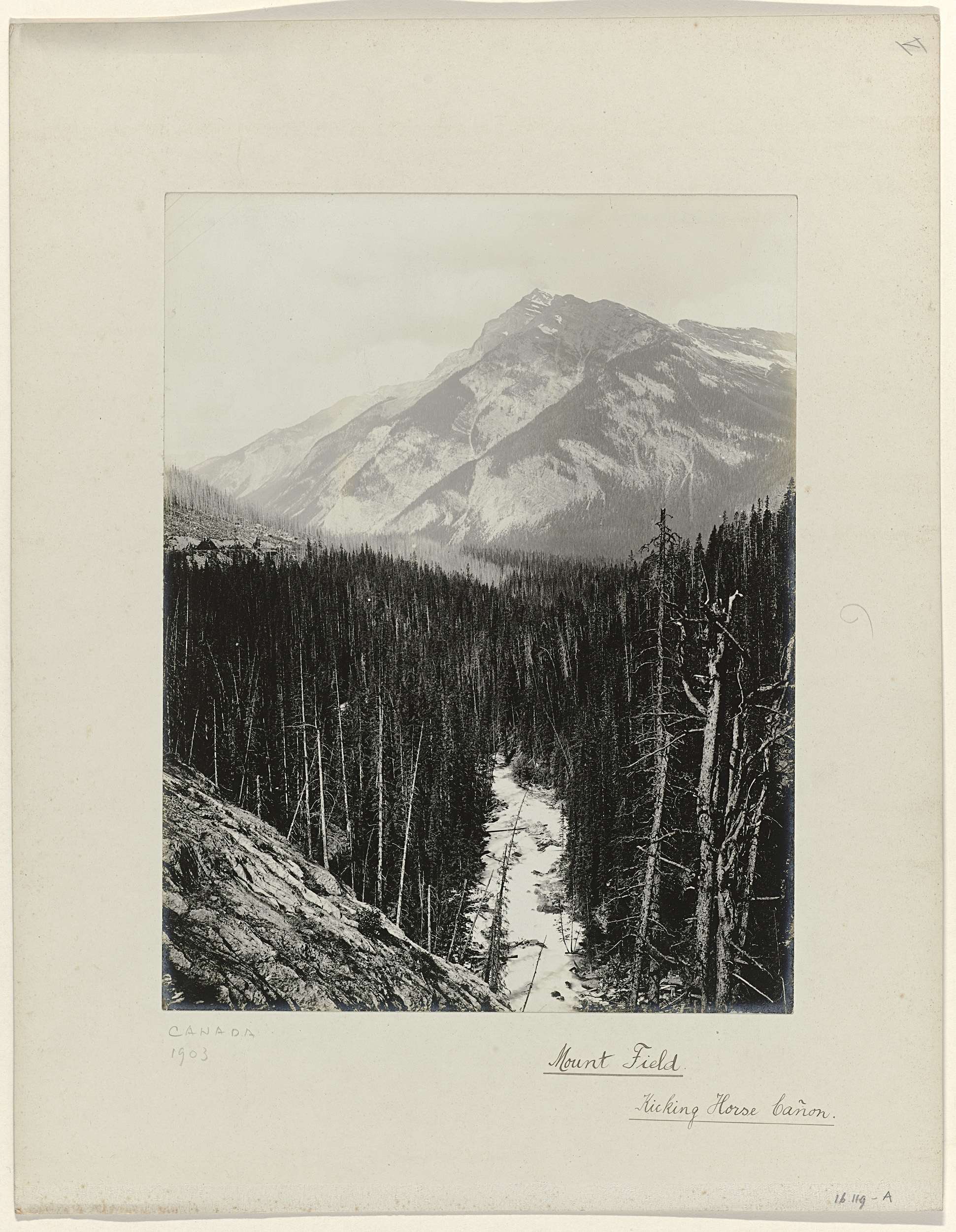 Gezicht op Mount Field en de Kicking Horse River in ...