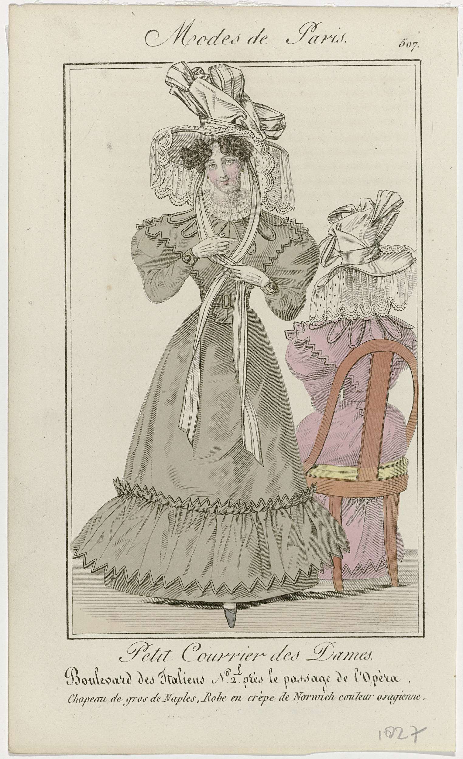 Petit Courrier des Dames, 1827, No. 507 : Chapeau de...